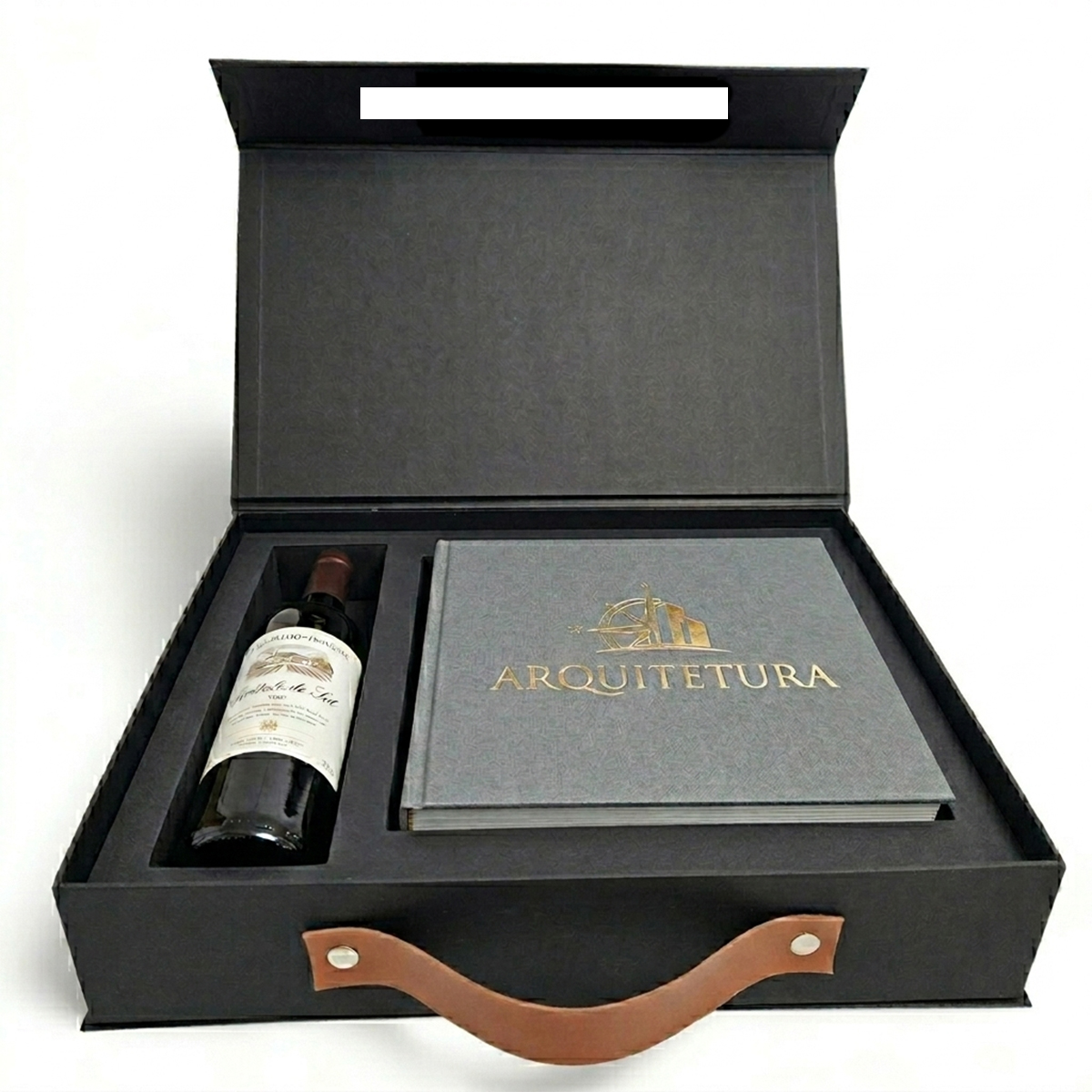 Maleta Cartonada 58x37x9 com Berço para Vinho e Projeto de Engenharia/Arquitetura, tamanho A3, Personalizada com Logomarca, tampa magnetica, com alça em couro sintetico